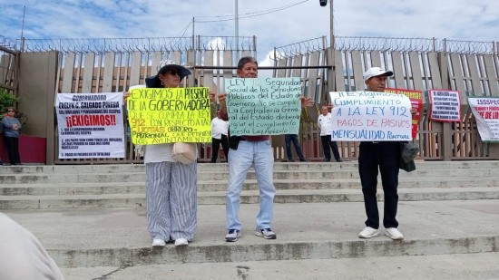 | Los ex trabajadores portaban mantas y pancartas en las que exigieron el pago de mensualidades atrasadas y demás prestaciones que les adeudan; además se plantaron a las afueras del palacio de gobierno y con un megáfono demandaron a la gobernadora Evelyn Salgado Pineda que, los escuche y sobre todo que resuelva sus demandas. | ||||||