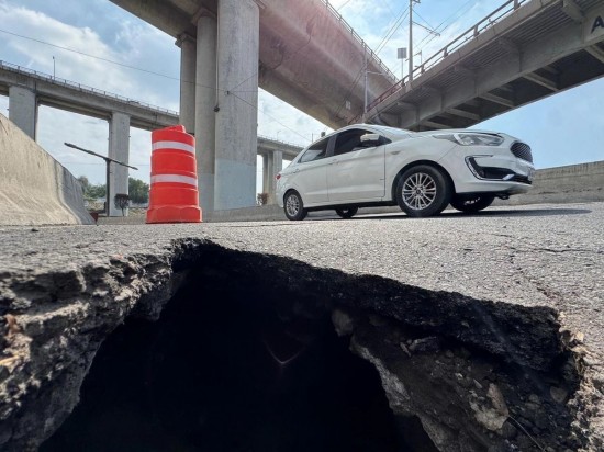 Ciudad de México.- Un socavón de gran tamaño apareció en la curva ubicada bajo el puente de La Concordia, en la alcaldía Iztapalapa, donde hace apenas 20 días ocurrió el accidente de la explosión de una pipa de gas que hasta ahora ha dejado 31 personas fallecidas.