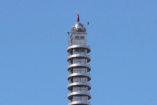 | La multitud a pie de calle estalló en vítores al llegar a la cima de la torre de 508 metros, (1667 pies), unos 90 minutos después de su salida. Con una camiseta roja de manga corta, Honnold agitaba los brazos por encima de la cabeza. | ||||||