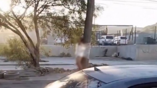Desnudan y atan a árbol a sujeto por supuesta infidelidad en Tijuana.