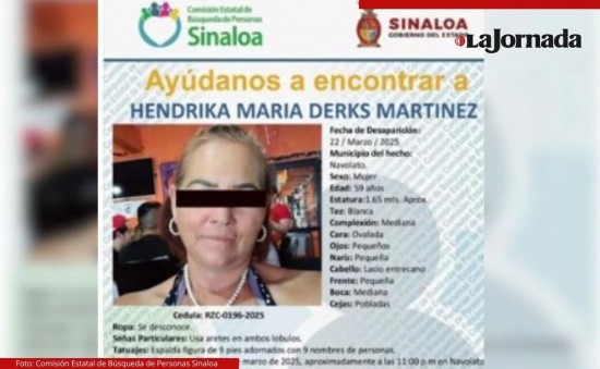 Ciudad de México.- En una fosa clandestina fueron localizados los restos de la ex agente jubilada de seguridad pública y tránsito municipal de Navolato, Hendrika Derks, que había sido privada de la libertad junto a tres integrantes de su familia el pasado marzo del año 2025.