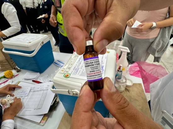 Durante una breve referencia a la situación del sarampión, la mandataria dijo que el objetivo inmediato es aplicar 2.5 millones de vacunas a la semana, mencionando que se esperaba un envío de 15 millones de vacunas y ahora hay 27 millones de vacunas.