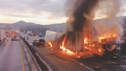 Brutal choque en la México-Querétaro: tráileres se incendian, reportan varios heridos |