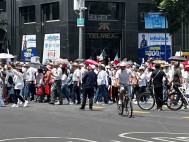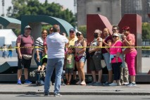| Vestidos de blanco, en su mayoría el contingente partió del Monumento a la Revolución y se dirige al Zócalo de la Plaza de la Constitución