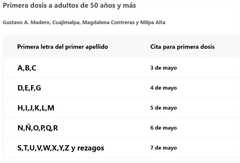 | Vacunación Covid-19 CDMX: Iniciará inmunización a adultos de 50 a 59 años en 5 alcaldías. | ||||