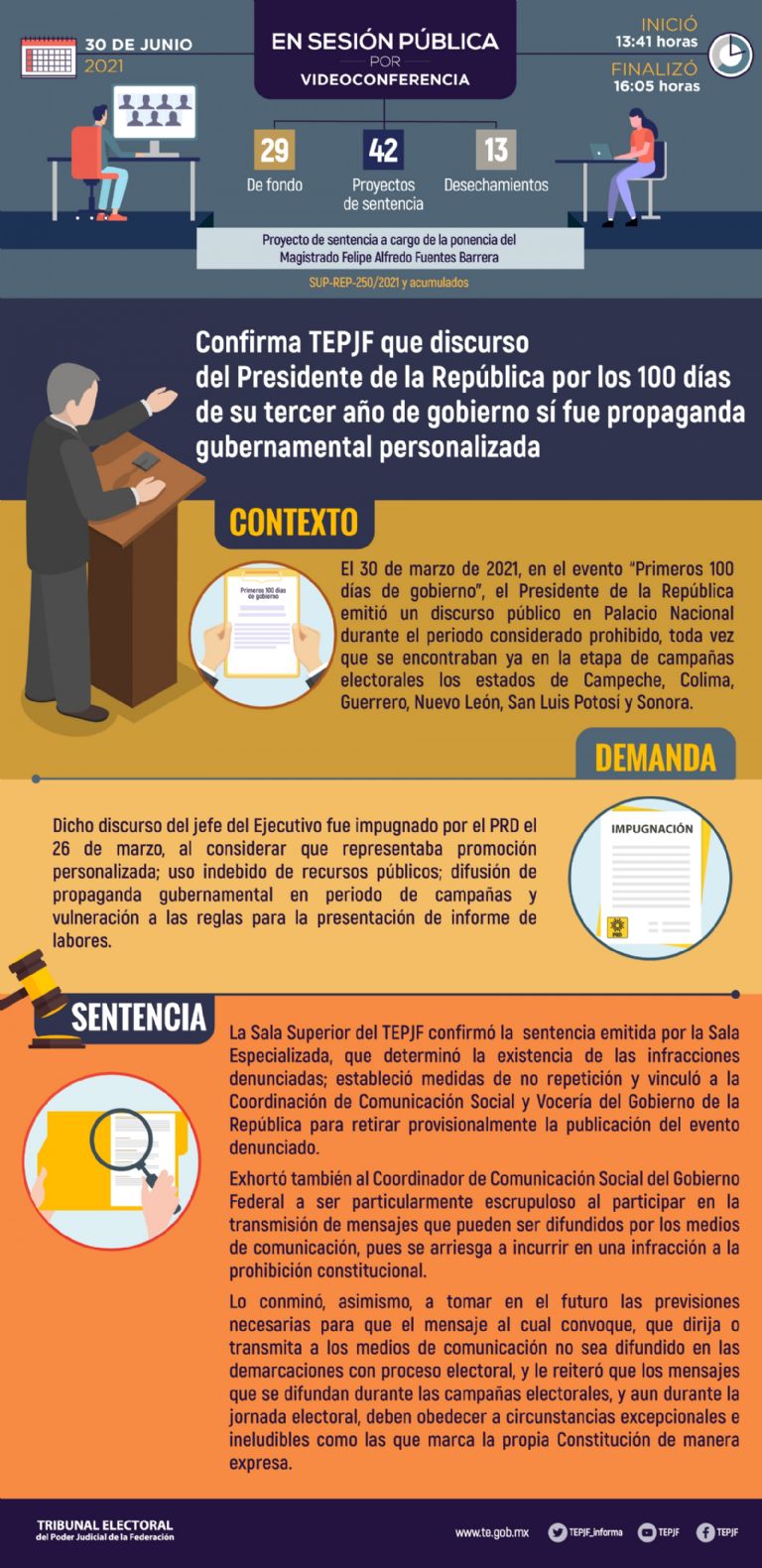 El TEPJF votó de manera unánime que el discurso que dio López Obrador el 30 de marzo sí constituyó propaganda gubernamental personalizada en periodo prohibido. La Sala Superior dijo que el acto del presidente violó la veda electoral y por esa razón pidieron que los videos fueran retirados de las redes sociales y las páginas oficiales de presidencia y del titular del Ejecutivo. A través de un comunicado de prensa, la Sala Superior del TEPJF explicó que López Obrador hizo propaganda indebida cuando ya habían comenzado las campañas rumbo al 6 de junio en los estados de Campeche, Colima, Guerrero, Nuevo León, San Luis Potosí y Sonora. ![]() Utilizó recursos indebidos Por esa razón, el tribunal confirmó que existió una utilización debida de recursos públicos, por la cantidad de 185 mil 515 pesos, lo que costó el acto público de López Obrador. Además, los magistrados pidieron a la Presidencia de la República, a López Obrador y a su director de comunicación, que sean más respetuosos con las indicaciones y los mensajes que pueden ser difundidos por los medios de comunicación. Esto porque pueden cometer una falta a los reglamentos y recibir una infracción. Durante la campaña, López Obrador tuvo múltiples encontronazos con las autoridades electorales, que lo apercibieron por hacer propaganda en sus conferencias de prensa diarias. |