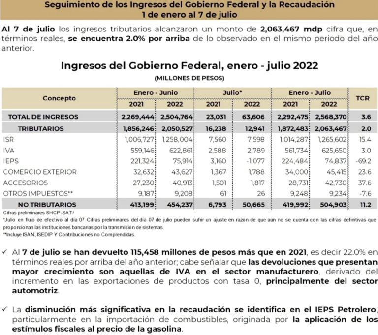 Además, dijo que mantener estable el precio de las gasolinas también contiene la inflación. Y es que, a pesar de que reconoció que el Índice Nacional de Precios al Consumidor (INPC) subió a 7.99 por ciento resaltó “vamos bien”. “Para tranquilidad, también, de nuestros adversarios, tecnócratas, conservadores: de todas maneras, aún con este subsidio (a gasolinas), nos está quedando una utilidad, un excedente, como de 30 mil millones, una vez entregado lo que le corresponde a los Estados, porque también si aumenta el precio del petróleo, del excedente se benefician los gobiernos estatales, hay más participación. Van a tener más participación y el gobierno federal, calculamos, todav��a va a disponer de 30 mil millones”, indicó este miércoles en Palacio Nacional. IEPS disminuye el 69.2 por ciento: AMLO ![]() López Obrador presentó una gráfica de los ingresos para el país en el que expuso que entre enero a julio del 2021 los ingresos por Impuesto Especial sobre Producción y Servicios (IEPS) cayó de 224 mil 484 millones de pesos a 74 mil 837 millones de pesos en el mismo periodo del 2022, lo que significa una disminución del 69.2 por ciento. “Está dentro del balance porque, como estamos vendiendo, casi un millón de barriles diarios de petróleo, y ya llevamos casi cuatro meses con un precio de más de 90 dólares el barril, esos excedentes nos permiten esto; que no aumente el precio de la gasolina. “Esto es lo que nos permite mantener lo más controlado posible la inflación porque la inflación es el impuesto que más afecta, sobre todo a la gente pobre. Si subimos el precio de la gasolina se va todo para arriba”, indicó. AMLO celebra decisión de S&P de ratificar calificación crediticia para México López Obrador también presumió que, esta semana, la calificadora Standard & Poor's (S&P) ratificó la calificación crediticia para México y mejoró la perspectiva hacia el país, de “negativa a estable”. “Hubo una calificación favorable a México porque se considera que se tienen finanzas sanas y esto nos permite estar bien posicionados en el mundo financiero, y no está mal calificada la hacienda pública del país, y además de que las calificadoras consideran que están bien manejadas las finanzas públicas en el país, pues se está también demostrando con la estabilidad cambiaria, la llegada de inversión extranjera”, dijo. Sin embargo, reconoció que hubo un incremento en la inflación en México, lo que aumenta el precio de todos los productos y servicios para los ciudadanos, sin embargo, garantizó que el gobierno seguiría tomando acciones contra la carestía al mantener estable el precio de las gasolinas y otras medidas. “Hubo un incremento en la inflación, pero no desmedido, no ha llegado a 8 por ciento, sin embargo, con relación a la inflación en el mundo, México es de los países menos afectados y estamos tomando medidas contra la inflación, sobre todo lo que tiene que haber con incrementos. “Por eso estamos bien y hoy recibí el informe, como todos los días de los ingresos”, expuso. |