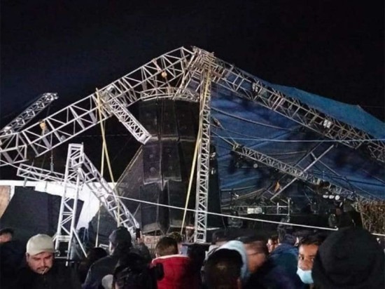 | En el accidente además se desplomaron torres de metal que sostenían lámparas de iluminación y bocinas de los equipos de sonido de agrupaciones que se presentarían en el lugar. | ||||||