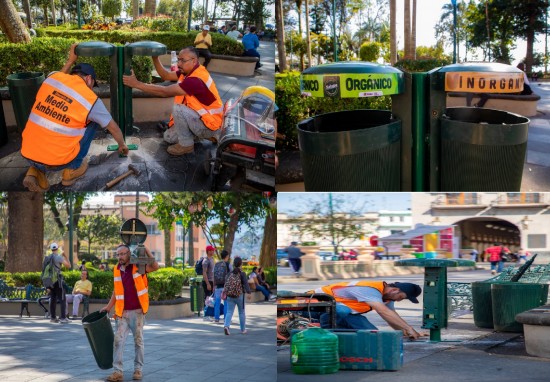 XALAPA.- Con el fin de mejorar la imagen del parque Benito Juárez y facilitar el depósito y recolección de desechos en este espacio público, personal de la Dirección de Medio Ambiente sustituyó los contenedores de acero inoxidable por recipientes de plástico recién rehabilitados.