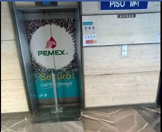 | Debido a la falta de mantenimiento, por la aplicación de la “Autoridad Republicana”, un elevador de la Torre Ejecutiva de Pemex, cayó desde el piso 33 hasta el piso 12, ahí se detiene unos segundos y vuelve a caer al piso 9, donde finalmente se detuvo, esto sucedió este jueves 19 de enero al filo de las 18:00 horas en los elevadores, de la zona alta, dejando como saldo afortunadamente, solo un trabajador lesionado en cuello y espalda, informaron empleados que laboran en el Complejo Administrativo de Petróleos Mexicanos, ubicado en la avenida Marina Nacional de la Ciudad de México.