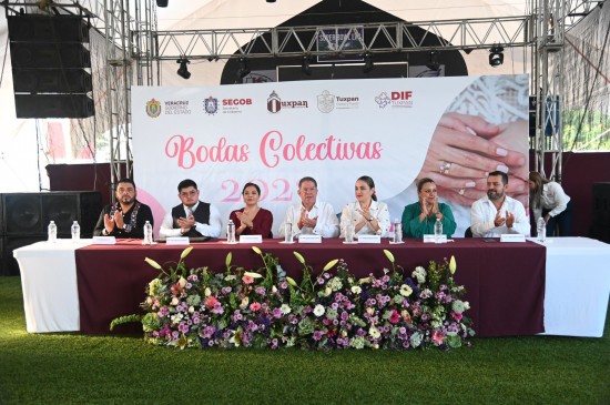 Las parejas fueron acompañadas por amigos y familiares, para formalizar su unión en una ceremonia civil realizada en el Hotel Royal Garden. La celebración estuvo encabezada por el alcalde José Manuel Pozos Castro; Pamela Morales Huesca, presidenta del DIF Tuxpan; la Diputada Federal por el 3er Distrito, Rocío Hernández Villanueva; la regidora Maryanela Monroy Flores; el regidor Axel Bernal Herrera; María Fernanda Damirón Alonso, Jefa del Departamento de Oficialías; el oficial del Registro Civil, Lic. Jordi Moisés Maya Hernández; y el director del DIF Tuxpan, Psic. Eliseo Reyes Melchor. También asistieron las regidoras Anahí Aguilar López y Lucero Reséndis Ambrocio, y el regidor Luis Demetrio López Marín; así como directores y coordinadores de área del Ayuntamiento de Tuxpan. En un mensaje dirigido a las parejas, el alcalde José Manuel Pozos Castro felicitó a los contrayentes y señaló que el matrimonio es la base sólida en la que se cimienta la familia, por lo que cada unión que se formaliza fortalece la célula principal de la sociedad. Indicó que le daba gusto que también se celebraran matrimonios igualitarios, ya que Tuxpan es un municipio de derechos en el que se construye la unidad a partir de la diversidad y se privilegia la inclusión. “A ustedes, que les une el anhelo de una vida mejor, quiero decirles que seguiremos trabajando para que las familias tuxpeñas tengan un mejor lugar para vivir, para crecer y salir adelante; porque son precisamente las familias fuertes y unidas las que impulsan la gran transformación de nuestro querido municipio”. José Manuel Pozos destacó que “El matrimonio debe inspirar a perseverar para hacer de la vida, un firme testimonio de que las mejores cosas se construyen en pareja”. Reconoció el trabajo del DIF Municipal y de su directora Pamela Morales, y del Registro Civil para sacar adelante la campaña de matrimonios colectivos. El oficial del Registro Civil, Lic. Jordi Maya, aseguró que realizar gratuitamente estos matrimonios es una manera de brindar certeza jurídica a las parejas, dando seguridad a las familias y a sus patrimonios, por lo que agradeció al Gobierno del Estado y al Gobierno Municipal. Así mismo, resaltó el compromiso y la responsabilidad del personal del Registro Civil, por la labor realizada en la recepción de la documentación de las 170 parejas solicitantes. Al realiza el brindis, el alcalde expresó: “Hay momentos en la vida que se vuelven inolvidables porque son el principio de una gran ilusión. Quiero desearles que sean siempre felices, y que su unión se fortalezca del amor”. El festejo estuvo amenizado por la internacional Sonora Santanera, quienes pusieron a bailar a los recién casados; también partieron un gran pastel, hubo rifas y entrega de premios. |