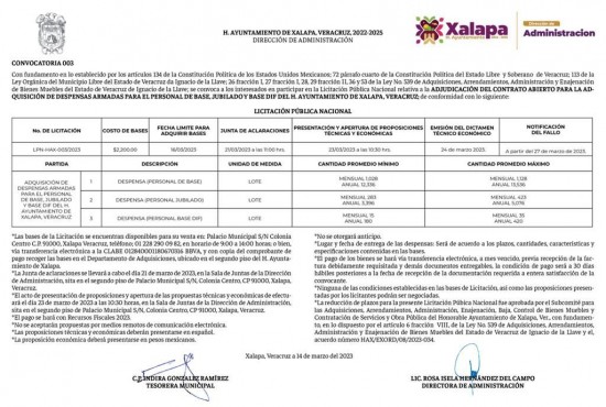 | Emite Ayuntamiento Licitación Pública Nacional para adquirir despensas . | ||||||