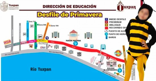 Por lo anterior, la Dirección de Tránsito Municipal informa a los conductores que tomen en cuenta este cierre para que tomen rutas alternas, transiten con precaución y eviten contratiempos en sus traslados. También por la realización del desfile de la primavera, este miércoles 22 de marzo, el ayuntamiento de Tuxpan llevará a cabo un operativo de vigilancia que comprende diversos puntos para que los menores que participan lo hagan en las mejores condiciones. Las autoridades municipales, a través de la Dirección de Tránsito y Vialidad, se encargará de resguardar la avenida Juárez desde la calle Revolución hasta la calle Azueta, desde tempranas horas del 22 de marzo. Los contingentes se colocarán sobre la calle Hernández y Hernández, Heroica Veracruz y Zózimo Pérez, para avanzar sobre la avenida Juárez hacia el palacio municipal y culminará sobe la calle Morelos. Cabe destacar que las autoridades educativas, en coordinación con el ayuntamiento de Tuxpan, colocarán por primera vez zona de sanitarios que se ubicará en la calle Heroica Veracruz, cerca de bulevar, además de dos puntos de hidratación localizados en el parque Reforma y en la plaza cívica, junto a dos puntos de auxilio, el primero en la calle Venustiano Carranza y el segundo en la calle Garizurieta, pasando la Catedral de Nuestra Señora de la Asunción. El presídium se ubicará en los bajos del palacio municipal, en donde se instalarán las autoridades civiles y militares. Dicho desfile iniciará a las 9:00 de la mañana y se tiene programado que termine alrededor de las 11:30 a 12:00 del día. La Dirección de Tránsito y Vialidad pide a los padres, madres y tutores programarse para ir a dejar a sus hijos a sus respectivos puntos con tiempo, y solicita a los conductores que usen las vías del bulevar con prudencia, ya que habrá muchos niños en la zona centro de la ciudad. Por Esperanza Barrientos |