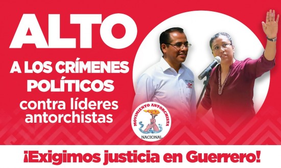 Gobernadora del estado de Guerrero. A la Opinión Pública Nacional PRESENTES: Los jóvenes líderes antorchistas, ambos integrantes del Comité Estatal en Guerrero, Conrado Hernández Domínguez y su esposa Mercedes Martínez Martínez, fueron asesinados a golpes la tarde del 12 de abril. Su pequeño hijo de siete años de edad, Vladimir Tlacaélel, fue asfixiado en el mismo ataque por sicarios desalmados para quienes exigimos cárcel inmediatamente. Esta fue la conclusión de la autopsia realizada por un perito del Semefo de Guerrero, que es el lugar a donde fueron llevados los cuerpos de nuestros compañeros cuando los encontraron en su carro en una barranca de la carretera México-Acapulco, cerca de Chilpancingo. Conrado Hernández fue líder de nuestra organización en Chilpancingo de los Bravo durante 10 años y su esposa Mercedes era la dirigente de los antorchistas en la zona de La Cañada, desde hace año y medio. Ambos eran personas buenas, trabajadoras e inteligentes que siempre lucharon, desde muy jóvenes, a favor de los pobres de Guerrero. Vladimir era un niño muy inteligente y alegre, que apenas tenía siete años, que destacaba en su escuela por su empeño en las materias, su inteligencia y su capacidad para hacer arte y deporte. La Dirección Nacional del Movimiento Antorchista y toda la estructura en el país exige: Primero: que los encargados de impartir justicia en el estado abran una investigación, que sea seria y apegada a los hechos, para encontrar a los autores intelectuales y materiales del triple asesinato. Y que los encarcele. Segundo: que el gobierno del estado, que encabeza la Lic. Evelyn Salgado Pineda, use toda su estructura para garantizar que se haga justicia y se castigue a los responsables de estos crímenes atroces. Tercero: que el gobierno del estado ofrezca condiciones de seguridad para todos los antorchistas. Exigimos que cesen las agresiones y asesinatos contra nosotros. El Movimiento Antorchista considera que se trata de un grave crimen contra dos luchadores sociales y su hijo, que muestra la vulnerabilidad y descomposición de un país que parece no poder ponerle un alto a los graves problemas que tiene. Por lo tanto, anunciamos: Primero: este martes 18 de abril, en las capitales de todos los estados del país y en la Cámara de Diputados realizaremos conferencias de prensa para denunciar los tres asesinatos. Segundo: si no hay resultados en un plazo corto en las investigaciones para encontrar y encarcelar a los asesinos de nuestros compañeros, vamos a realizar en Chilpancingo una marcha con miles de guerrerenses. Si no hay después justicia, entonces iniciaremos una serie de movilizaciones regionales o nacionales en Guerrero y en cada estado. Respetuosamente, La Dirección Nacional del Movimiento Antorchista |
