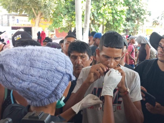 No queremos ser el migrante número 41”, dijo Irineo Mujica antes de que una mujer de origen dominicano le cosiera los labios. Señaló que ven la poca sensibilidad del gobierno en no atender a los migrantes que caminan, especialmente a los niños. Los migrantes que se cosieron la boca son de Brasil, Colombia, Honduras, El Salvador, Venezuela e Irineo Mujica, quien encabeza la caravana. Anunció que mañana a partir de las 4:00 horas caminaran hacia el municipio de Villa Comaltitlán a 16 kilómetros de distancia del municipio de Huixtla, Chiapas. La madrugad de este martes los migrantes partieron del municipio de Huehuetán, donde pernoctaron. |