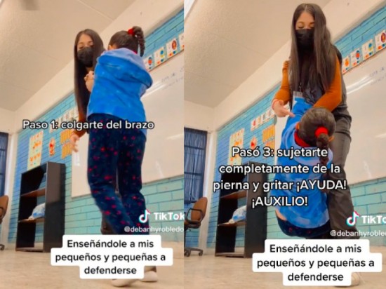 A través de TikTok, la maestra de nombre Debanhy Robledo mostró las tres acciones que les recomienda a los alumnos de primaria en caso de que alguien quiera llevárselos contra su voluntad. En el video que rápidamente se hizo viral, Debanhy toma a una alumna para ejemplificar su método. “Imagínate que vas caminando y alguien te agarra”, menciona mientras toma a la pequeña por el brazo. Su primer consejo es que los niños se cuelguen del brazo del atacante. Posteriormente, de acuerdo a ella, deben enganchar sus dos piernitas a la pierna del agresor con todos sus fuerzas, de tal manera que logren que no se mueva con facilidad o que, incluso, lo inmovilicen. Por último, sujetarse bien y gritar ‘¡ayuda! ¡auxilio!’. Tras su video, varias personas le agradecieron por sus consejos y lamentaron que esto se les tenga que enseñar. ‘Gracias maestra por enseñarles eso’ / ‘Cuánto anhelo que mis hijos tengan a una maestra como tú’ / ‘Está muy bien la técnica’ / ‘Esperemos que nuestros hijos no tengan que usarlo’ / ‘Es triste que tengan que enseñarles eso’, escribieron algunos usuarios en redes. |