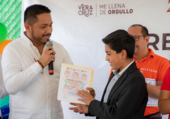 XALAPA.- Como parte de los festejos por el Día de la Niña y el Niño, Abraham T. V., de 12 años, recibió su nombramiento como Oficial del Registro Civil por un Día.