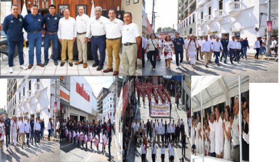 Al llegar frente a la Presidencia Municipal, instalaron el presídium en el que estuvieron el alcalde; el Dip. Local Genaro Ibáñez Martínez; la Dip. Federal Rocío Hernández Villanueva; la síndica Mtra. Beatriz Piña Vergara; las regidoras y regidores María del Pilar Martínez Matesanz, Maryanela Monroy Flores, Juan Gómez García, Lucero Reséndis Ambrocio, Luis Demetrio López Marín y Axel Bernal Herrera. El Ing. Raúl Patiño Blanco, Pdte. De la Cámara Nacional de Comercio, Servicios y Turismo de Tuxpan (CANACO-SERVYTUR); el Biol. Miguel Elizalde Martínez, Pdte. De la Cámara Mexicana de la Industria de la Construcción, Norte de Veracruz (CMIC); Mario Alberto Martínez Zapata, secretario general del Sindicato Único de los Trabajadores al Servicio del Municipio de Tuxpan; el Prof. Nelson Nolasco Pulido; y los destacados sindicalistas Francisco Javier Silva Arias, Manuel de los Santos Pérez Martínez y Dr. Francisco Espinoza Priego. Cientos de personas se congregaron en la Av. Benito Juárez, desde la calle Genaro Rodríguez hasta Revolución, para observar cómo se desarrollaba la marcha. Las delegaciones sindicales que formaron parte de este desfile conmemorativo fueron: la UNT, SNETNMPEPP, MMPV, STAAAF, CTM, SIRTT, CROC, SIDETAV-CAEV, COALICIÓN DE TAXISTAS, STPRM, SUTICOST, SNTE 56, SNTE 32, FSTSE, SNTSADER, SITEV, SUTSEM, SUTERM 126, SUTERM 55 Y CATEM. Algunos contingentes mostraron pancartas con peticiones para las autoridades de los tres niveles de gobierno, las cuales fueron recibidas por el alcalde y sus acompañantes del presídium. |