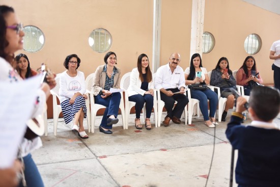 Funcionariado encabezado por el presidente municipal Ricardo Ahued Bardahuil asistió al jardín de niños “José María Morelos y Pavón”, donde fue recibido al ritmo de un son jarocho y la alegría de decenas de niñas y niños emocionados por la visita.