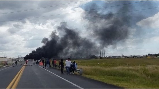Grupos rivales se enfrentaron con palos y piedras, mientras que en territorio tlaxcalteca los manifestantes incendiaron una camioneta. También quemaron rollos de plástico bajo un puente, lo que generó columnas de humo visibles a varios kilómetros.