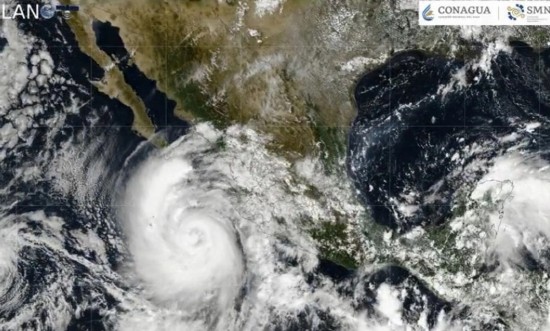 El Sistema Meteorológico Nacional (SMN) pronosticó que durante la noche del lunes y las primeras horas de este martes, los desprendimientos nubosos de Priscilla originarán lluvias intensas (de 75 a 150 milímetros [mm]) en Colima y en el este y la costa de Jalisco; muy fuertes (de 50 a 75 mm) en BCS, el sur de Sinaloa, Nayarit, la costa de Michoacán y el suroeste de Guerrero, así como fuertes (de 25 a 50 mm) en el sur de BCS. Además, se esperan vientos sostenidos de 60 a 70 kilómetros por hora (km/h) con rachas de 80 a 100 km/h en Jalisco y Colima; de 30 a 40 km/h con rachas de 50 a 70 km/h en el sur de Baja California Sur y costas de Michoacán, y de 10 a 25 km/h con rachas de 40 a 50 km/h en costas de Nayarit y el sur de Sinaloa. Se prevé oleaje de 5 a 6 metros (m) de altura en costas de Jalisco y Colima, de 3 a 4 m en costas de Michoacán y de 2 a 3 m en las costas del sur de Baja California Sur, Nayarit y el sur de Sinaloa. Al corte de las 15:00, el sistema se localizó aproximadamente a 335 km al suroeste de Cabo Corrientes, Jalisco, y a 550 km al sur-sureste de Cabo San Lucas, BCS, con vientos máximos sostenidos de 140 km/h, rachas de 170 km/h y desplazamiento hacia el nor-noroeste, a 11 km/h. Informó que se descontinúa la zona de vigilancia desde Punta San Telmo, Michoacán, hasta Manzanillo, Colima. El SMN pidió a la población permanecer alerta, puesto que las precipitaciones mencionadas podrían ser con descargas eléctricas y granizo, así como generar encharcamientos, deslaves e inundaciones en zonas bajas de los estados mencionados. Los vientos previstos podrían derribar árboles y anuncios publicitarios. |