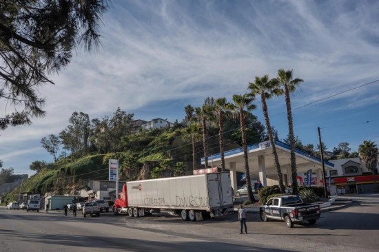 | Según información extraoficial, el conductor se encontraba descansando a bordo de la unidad en dirección hacia carretera libre Tijuana-Rosarito, a un costado de una gasolinera, cuando la caja del tráiler fue pintada.